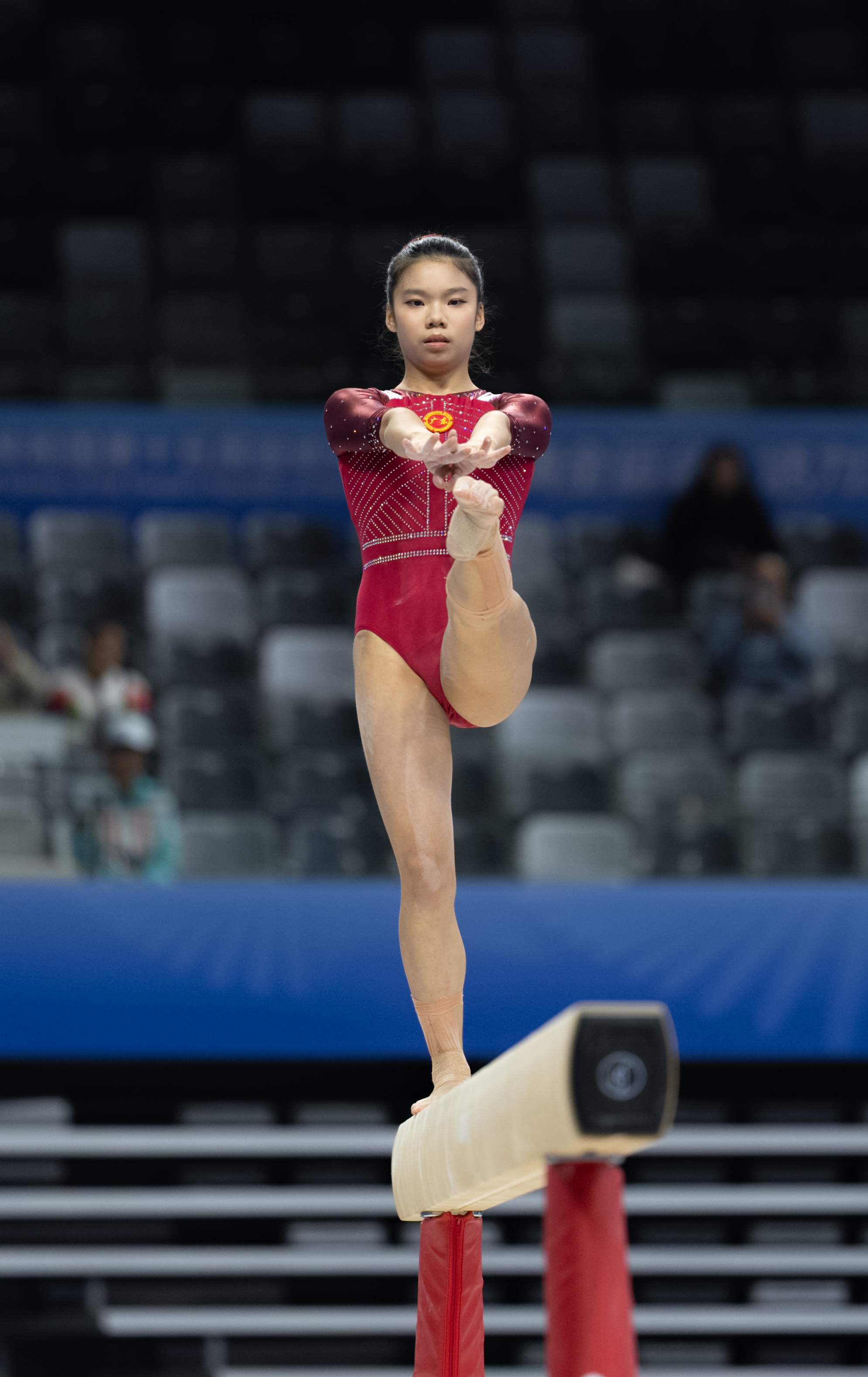 彭子金在体操成年组女团比赛上,平衡木表现突出。 南方+ 姚志豪 拍摄