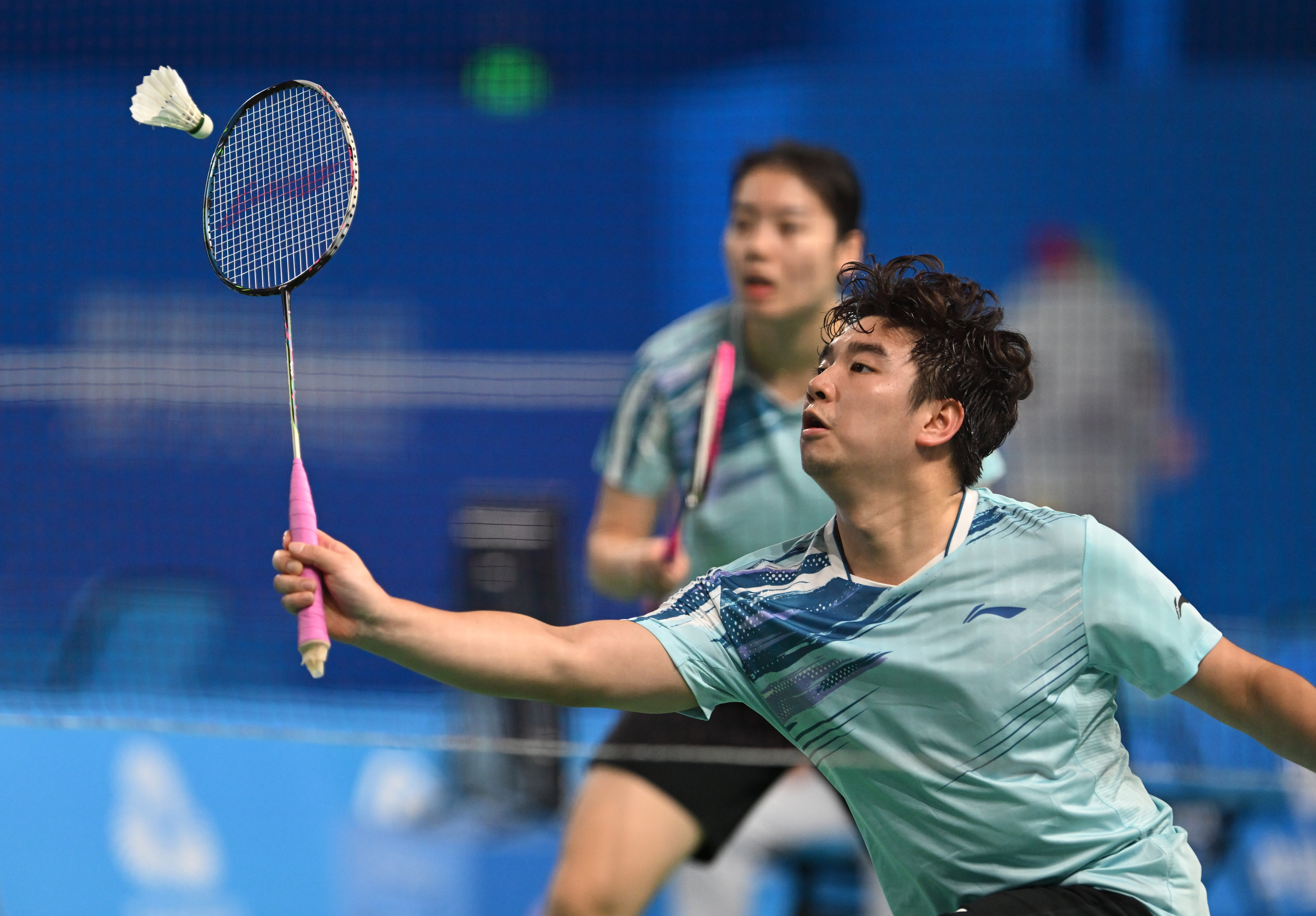 广东队组合吴拓斌/冯雪颖(左)在比赛中。 十五运会信息发布平台 供图