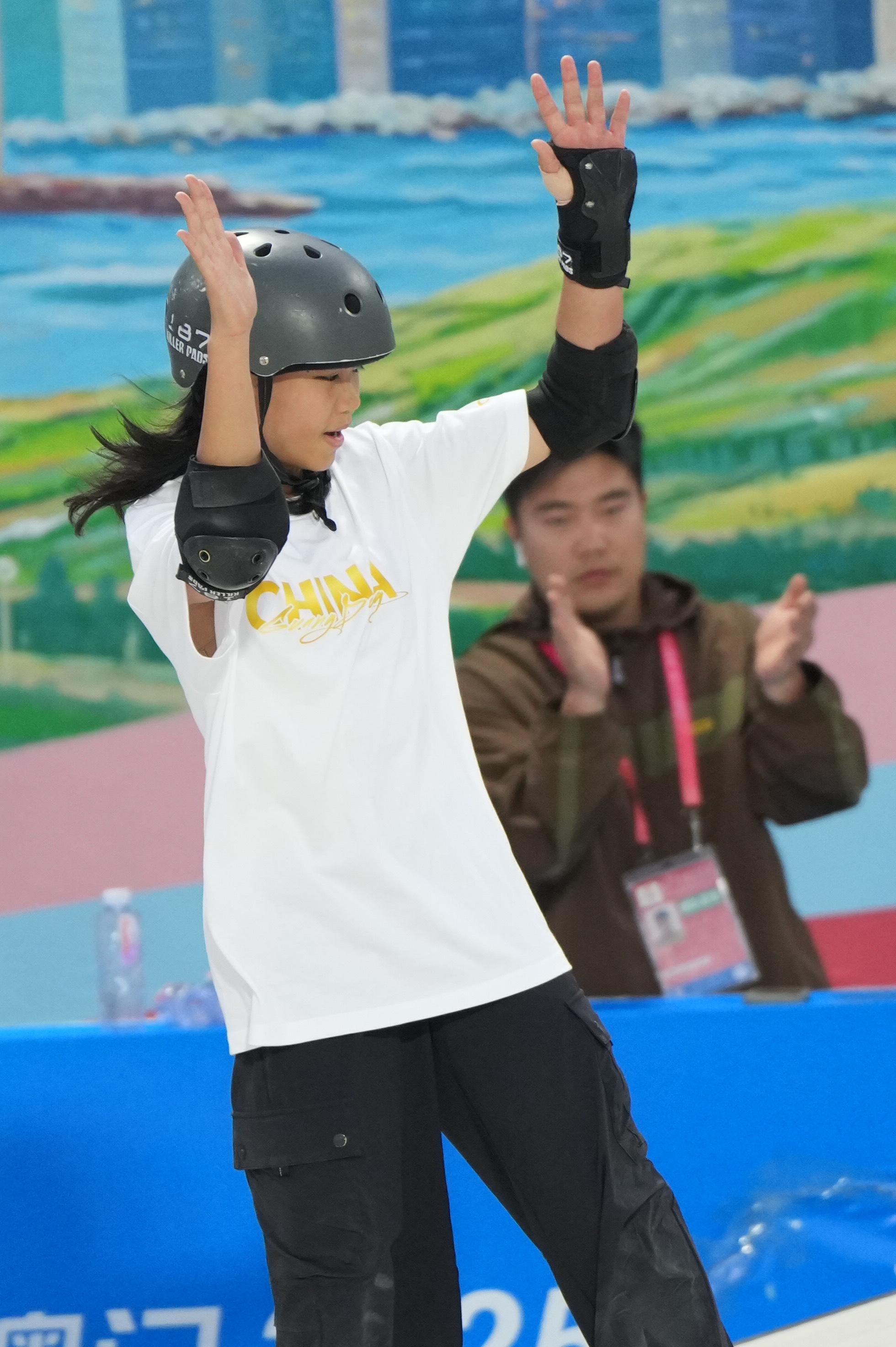 11月11日下午,十五运会滑板项目女子街式决赛在惠州举行。作为技巧性和观赏性并存的赛事,吸引了众多观众现场观看。奥运选手、肇庆广宁运动员朱沅铃、曾文蕙代表广东出战。决赛中,朱沅铃虽然在线路赛中排位落后,但凭借大绝招实现反超,以225.73分夺得亚军。曾文蕙排名第七。