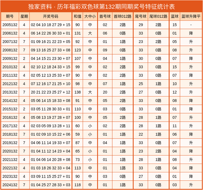 蓝球分析:去年同期蓝球开出03号球,属于小奇的形态,在同期数据集中,蓝球升降平分别开出:11次升、0次平、9次降。综合分析来看,本期看好蓝球较去年同期呈现【平】姿态,一码定蓝球:01。